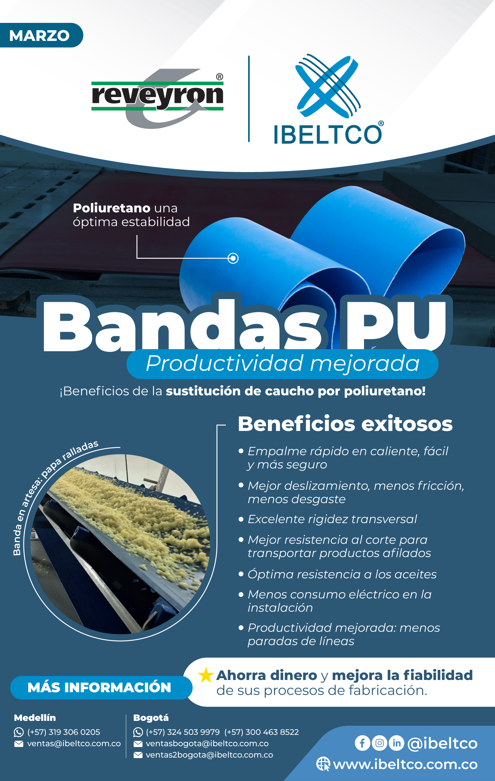 De esta manera, IBELTCO suma a su portafolio de productos, bandas diseñadas específicamente para estar en contacto directo con los alimentos con el fin de generar un óptimo resultado en producción, distribución y lo más importante, la entrega oportuna y la protección del consumidor.