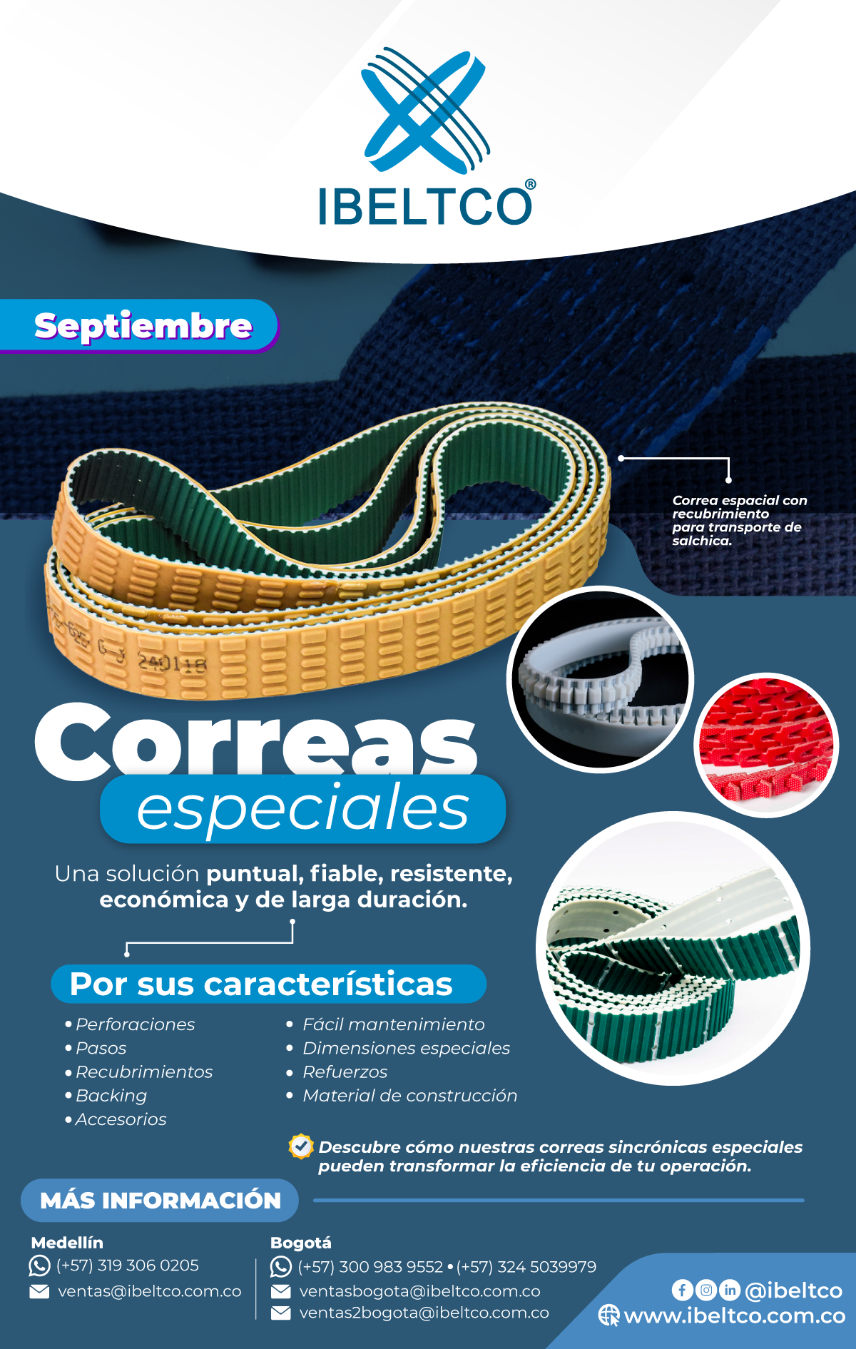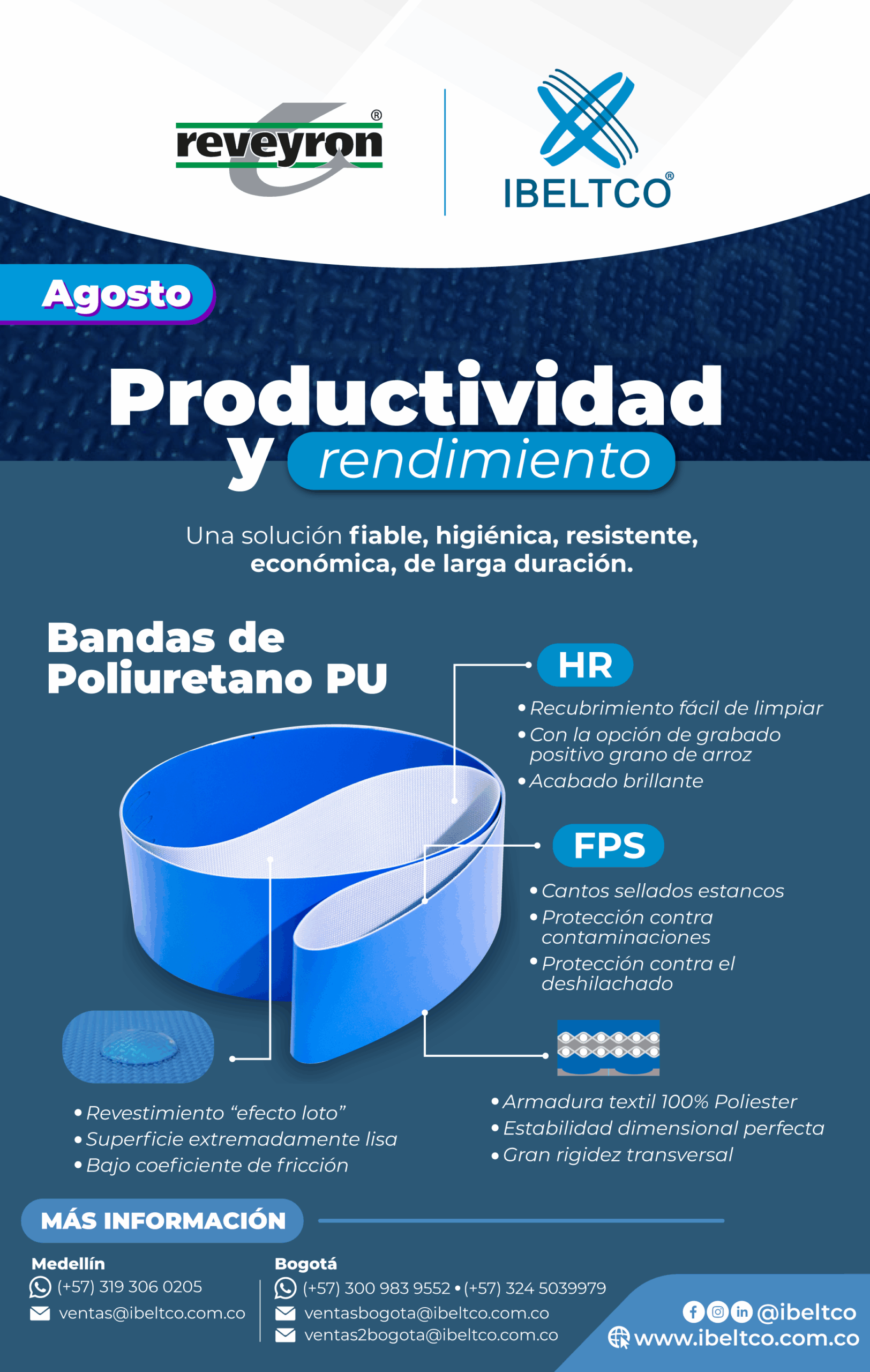 De esta manera, IBELTCO suma a su portafolio de productos, bandas diseñadas específicamente para estar en contacto directo con los alimentos con el fin de generar un óptimo resultado en producción, distribución y lo más importante, la entrega oportuna y la protección del consumidor.