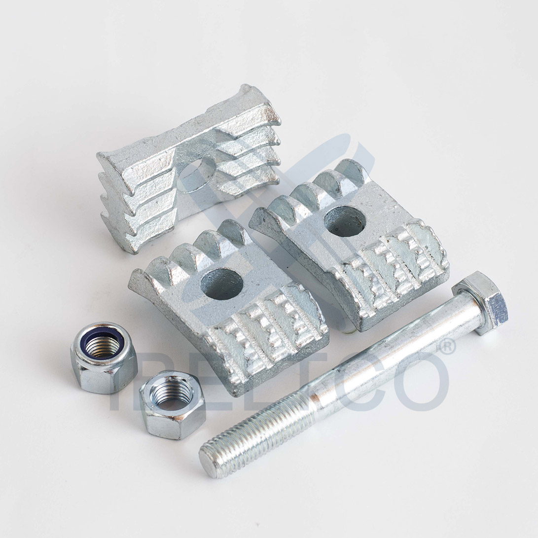 Las mordazas para elevador de cangilones son componentes mecánicos de sujeción que se utilizan para fijar las bandas transportadoras a los cangilones (los recipientes que cargan y transportan material en un elevador). Son las piezas que aseguran que el cangilón quede firmemente atornillado a la banda, soportando la tensión y las condiciones de trabajo del sistema.